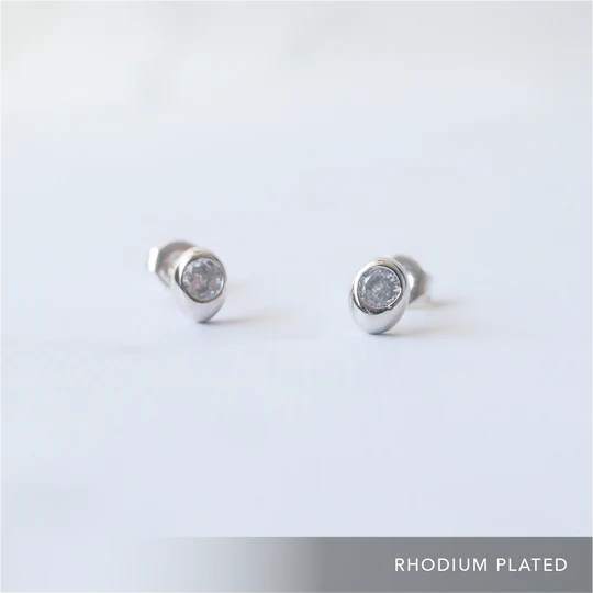 水晶耳針(925 純銀、抗氧化銠層、水晶)